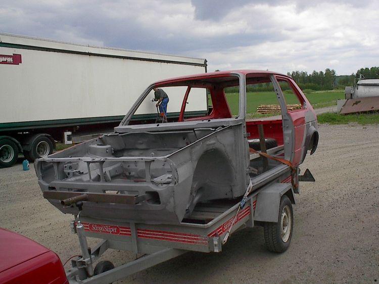 Bilen efter den varit på hel blästring