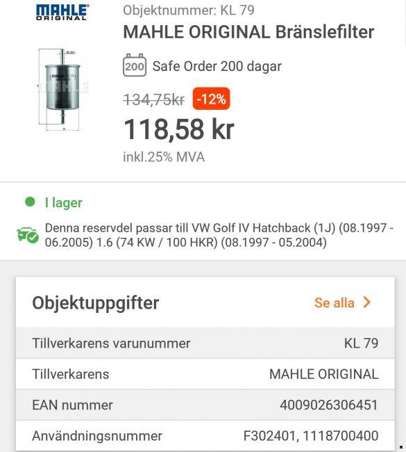 Bränslefilter bytt Feb 2018 @ 27500mil