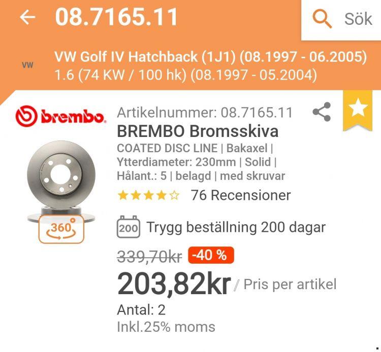 «2022 Maj 2x bromsskiva bak 34500mil»
