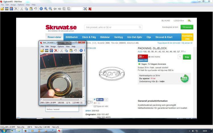 packning mellan motorblock/vevhus bytt augusti2014
